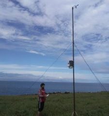 El panel (d) muestra la dirección del viento diario en forma vectorial. La dirección predominante del viento fue del norte y noreste durante el otoño- invierno cambiando al sur y suroeste durante la primavera y verano asociado al cambio meteorológico asociado al monzón mexicano (marzo-septiembre).