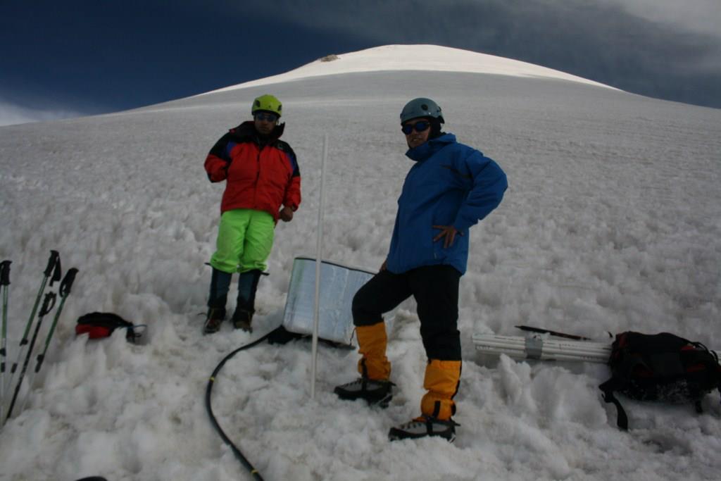 Instalación de balizas ablación/acumulación para el monitoreo del balance de masa del Glaciar Norte en el Volcán Citlaltépetl, 2011.