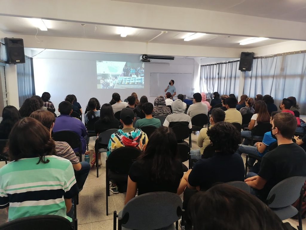 Derecha: puertas abiertas CICESE, 2022. Izquierda: charla en la Preparatoria Morelos, La Paz, B.C.S..