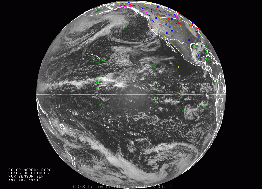 Imagen de satélite geoestacionario (GOES-17) al mediodía del 19 de marzo 2022. Imagen elaborada en CICESE con datos de Unidata.